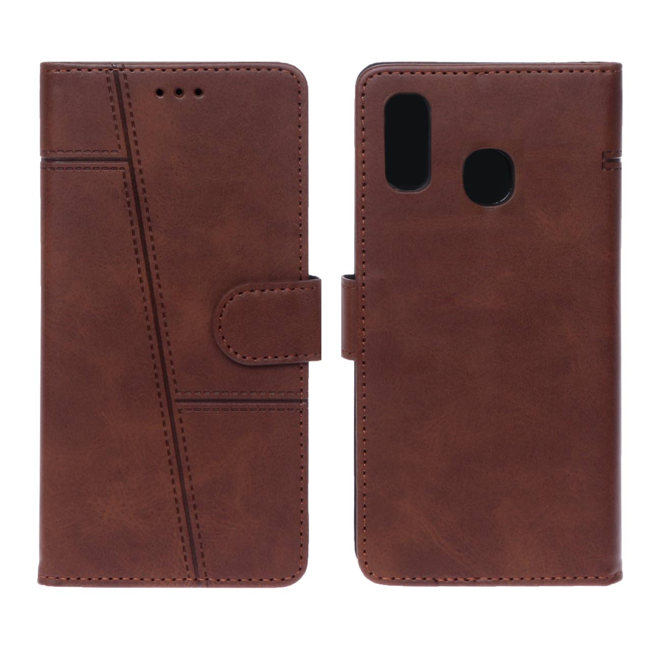 کیف موبایل Samsung A20 / A30 / M10s مگنتی طرح دوخت (جاکارتی دار) - قهوه ای