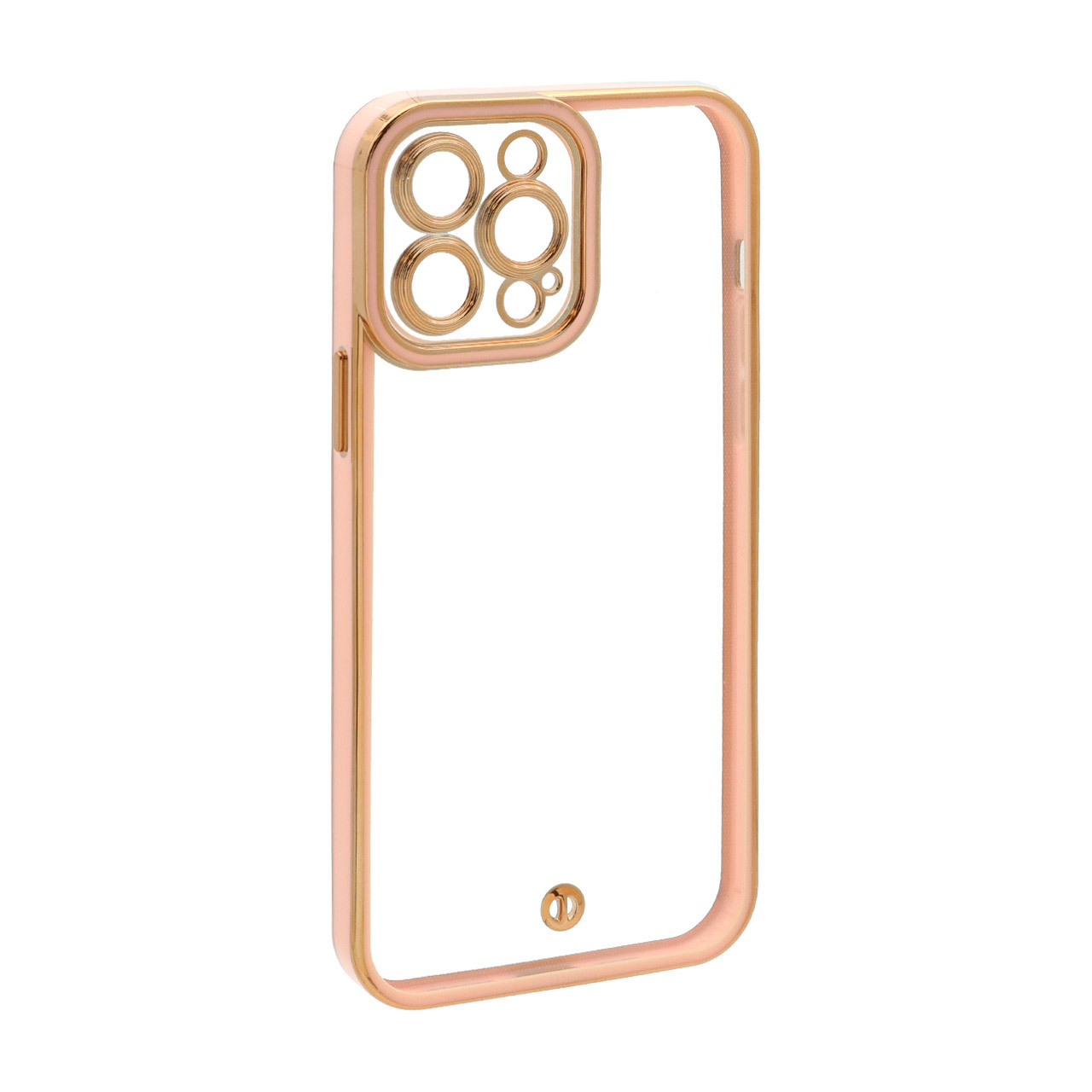 قاب آیفون Apple iPhone 13 Pro Max الکتروپلیتینگ دورطلایی محافظ لنزدار - گلبهی